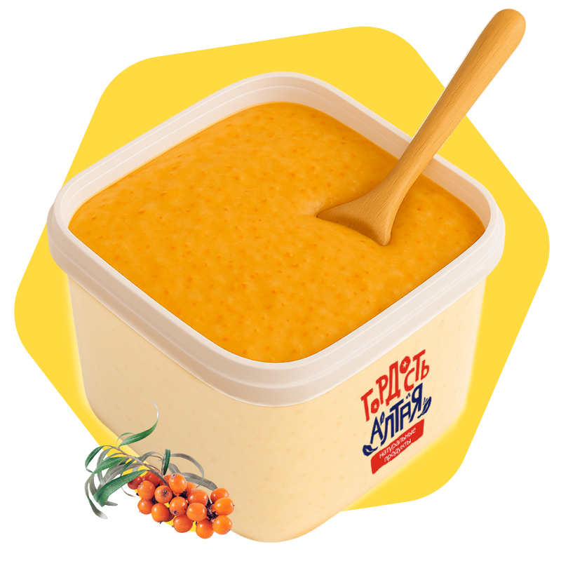 Крем-мёд с алтайской облепихой — это натуральный десерт с характерным ягодным вкусом и мягкой, взбитой текстурой. В его основе — алтайский цветочный мёд, в который добавлена натуральная облепиха (жмых, пюре или порошок). Ягода придаёт мёду лёгкую кислинку, насыщенный оранжевый оттенок и витаминный заряд.